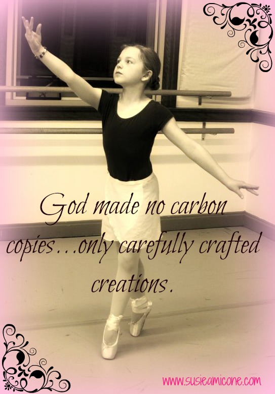 He sees me as perfectly crafted, created for a purpose. There is no else like me on this earth. Only I can do what He created me to do. Only I can be Susie.